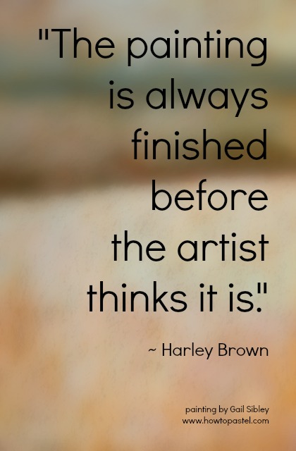 You are sooooooo right Sandi! The longer a piece stays on the easel, the more likely we are to pick away at it. Best to put it away then after some time, have a look. If all seems well, it’s done.