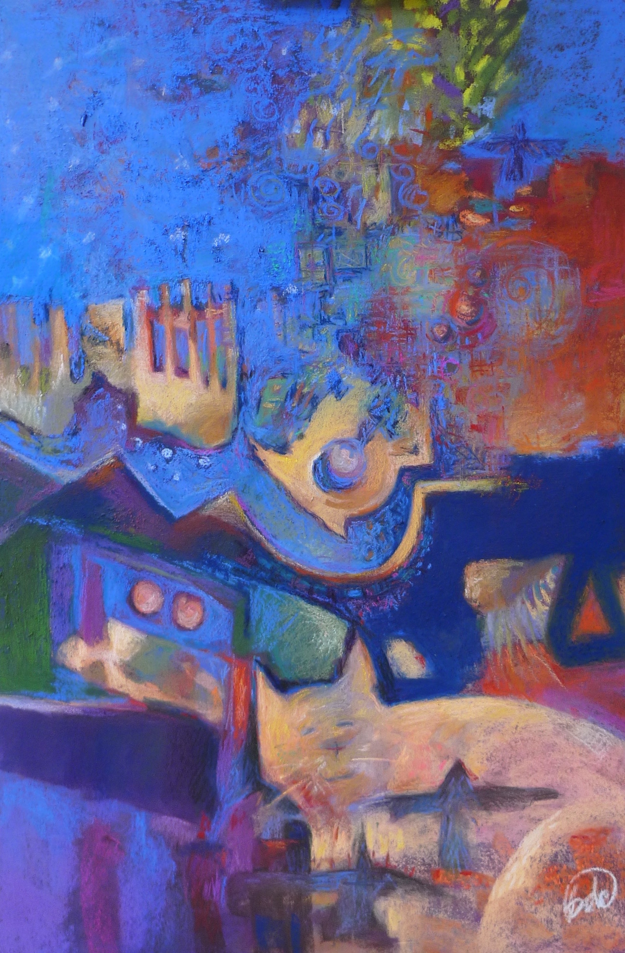 For years I have called myself a Visionary Artist for my subject matter or style. I have found that the pastel medium allows me to pursue my goals as an artist. I can work fast, revise quickly, enjoy the assortment of textures and the color range is enormous. I enjoy this freedom. My process in working with soft pastel has become a journey of exploration.