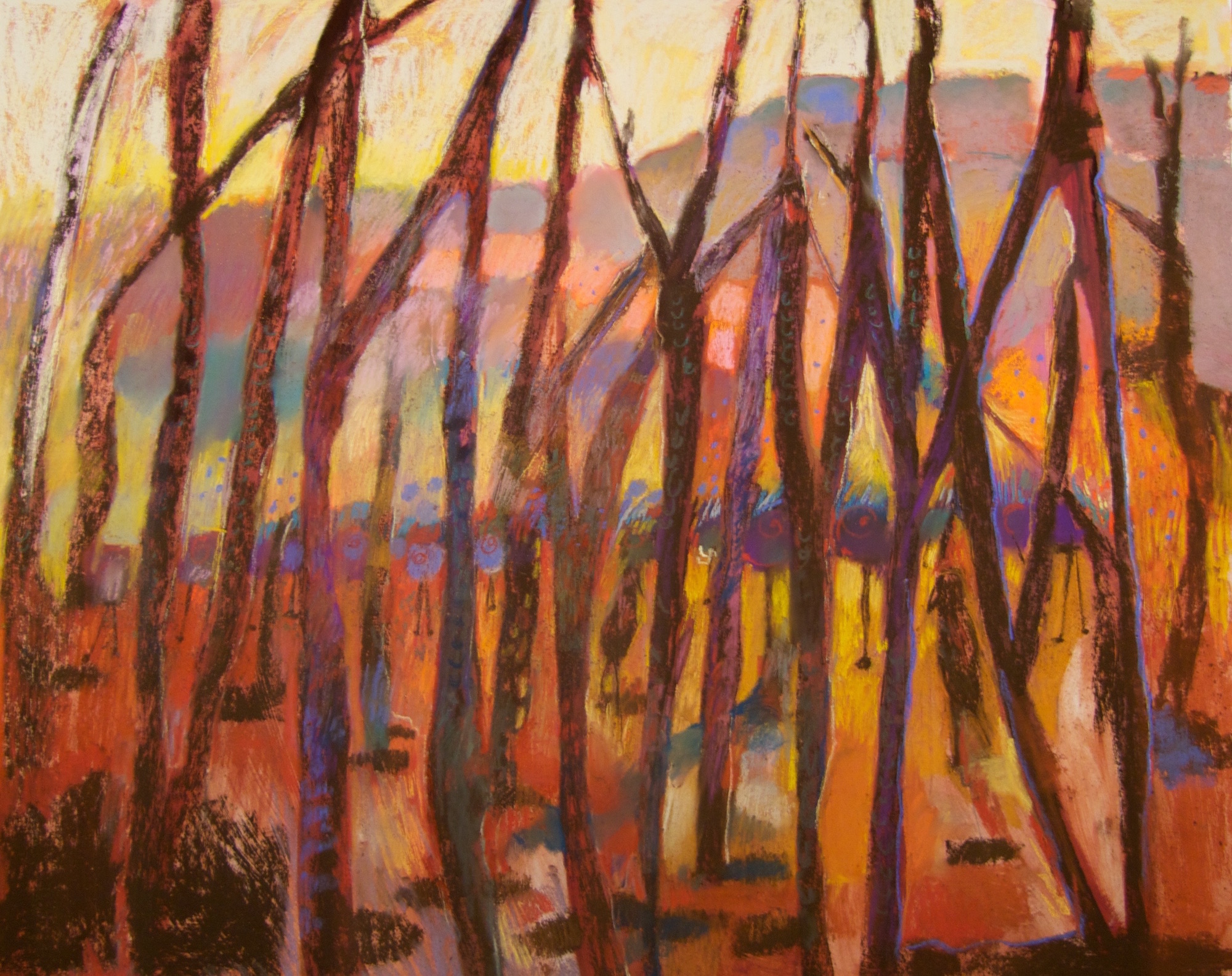 I like to start from a realistic place and then break it down. I see patterns, shapes, and markings that repeat in many of my paintings. The edges are very important with pastels. Certain color combinations that share edges can create the magic of luminosity.