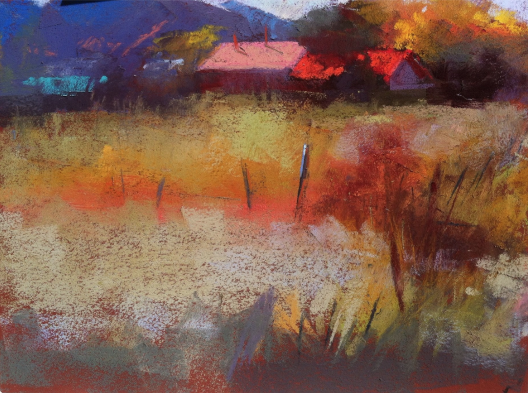 Aline Ordman, New Mexico workshop demo, Terry Ludwig pastels on Colourfix paper, 9 x 12 in
