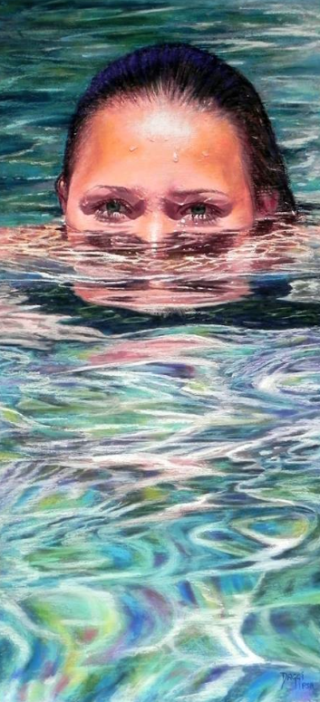 Daggi does some amazing portrait and figurative work. This month, this was the pastel that caught my attention – the incredible realism of the head (with the water reflections above the eyes and the drips of water) contrasted with the abstract quality of water that still appears perfectly real in the whole. You can see part of Daggi’s painting process here. How does she get such detail???? Check out more of Daggi’s work on her website.