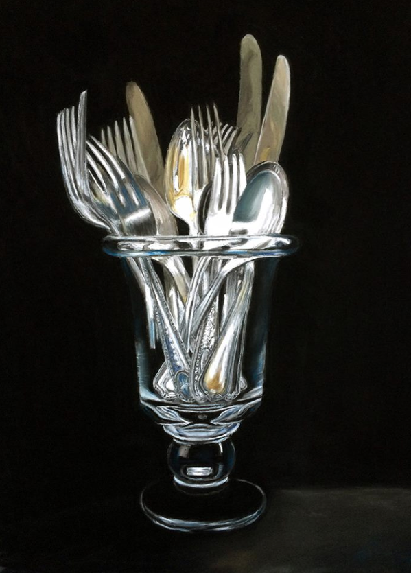 Diane Rudnick Mann, “Silverware in Glass,” pastel, 26 x 21 in
