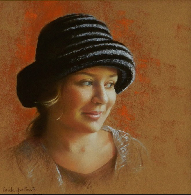 Gisele Hurtaud, “Le Chapeau de Marjolaine,” pastel on pastelcard, 13 x 13 in