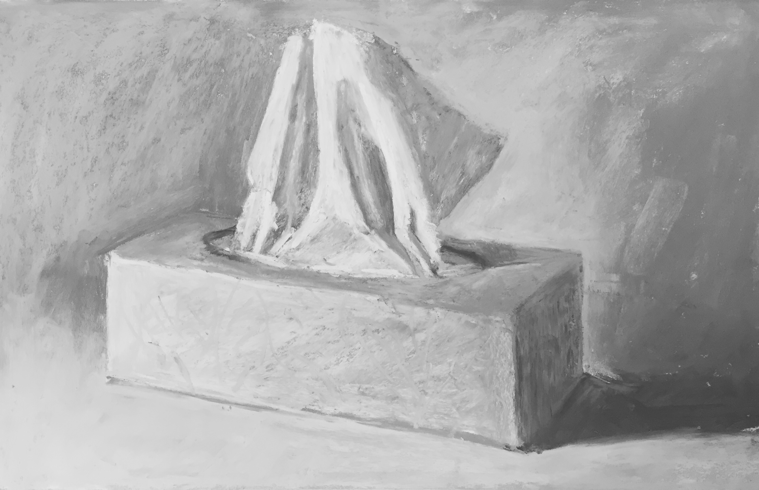 First, the subject – a box of tissues against a light neutral background. (I worked from life but this photograph gives you an idea of what I was facing.)