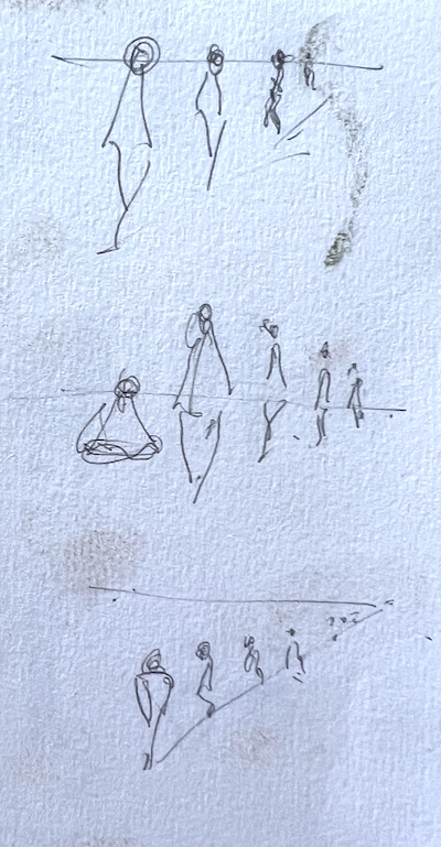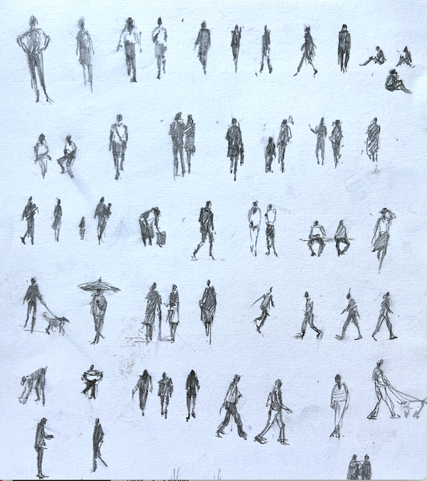 This is very helpful, Gail. I have also just started to add figures to my paintings. Your sketch of the many figures in many positions will be very helpful. I plan to make a sketch of my own…good practice,
