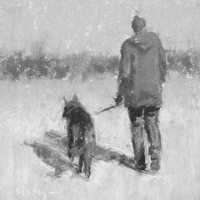 Finally, I cooled and softened the background so the two figures would stand out and there would be a feeling of space beyond them, even if it wasn’t clear what lay in the distance.
