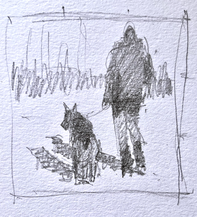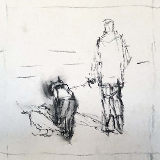 Now have a look at the reference photo. Dull isn’t it? Yet can you see how the relationship between the two companions along with the way their bodies move attracted me?
