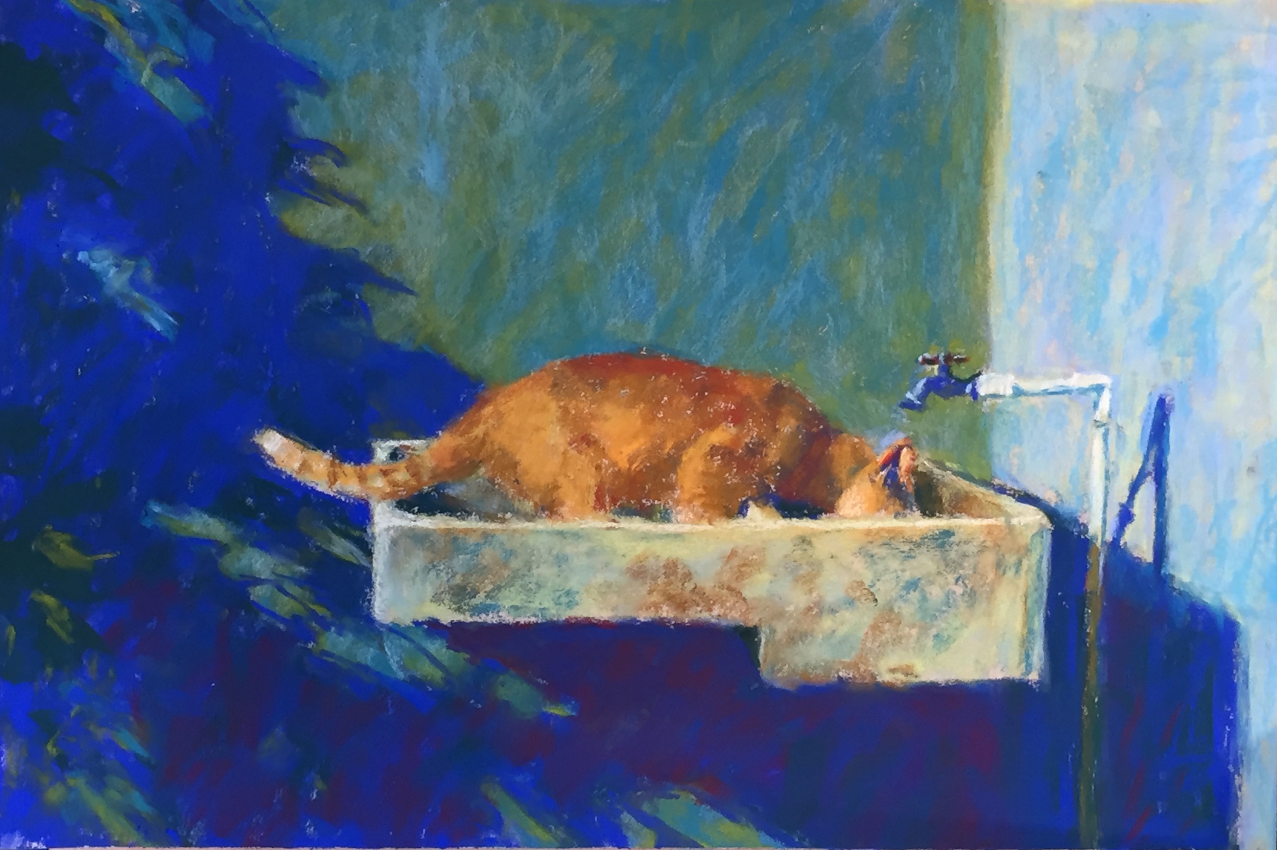 I love that cat sketch! Wonderful painting. They’re all good but both the sketch and the painting of the cat just made me grin! That thick tail gives it a look almost like a cougar – the pose, the anatomy, body rounding and gesture were so grand. I watch cats constantly and when a cat painter gets one that lively and real, with weight distributed naturally, muscles bulging, shoulders bumping… it’s a joy. Beautiful cat in a candid moment drinking!