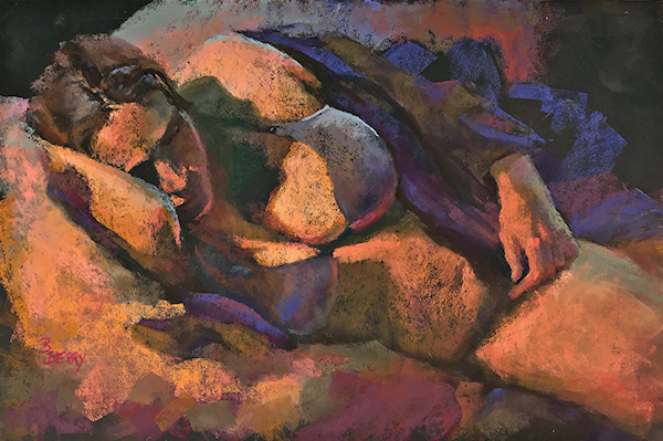Before we get to those pastel choices, I’ve been asked how I make these choices and where I find images. So here’s the deal. I have my eyes open for juicy pastels, pieces that strike me – usually on Facebook or Instagram though sometimes I come across the website of an artist whose work appeals to me. I don’t solicit submissions. Rather, I prowl the internet! And then I create a collection of images over the month (or two in this case) and as I prepare for the blog post, I go through them again and again, making choices.