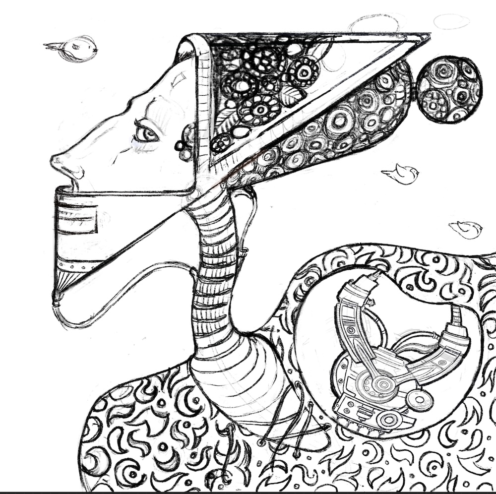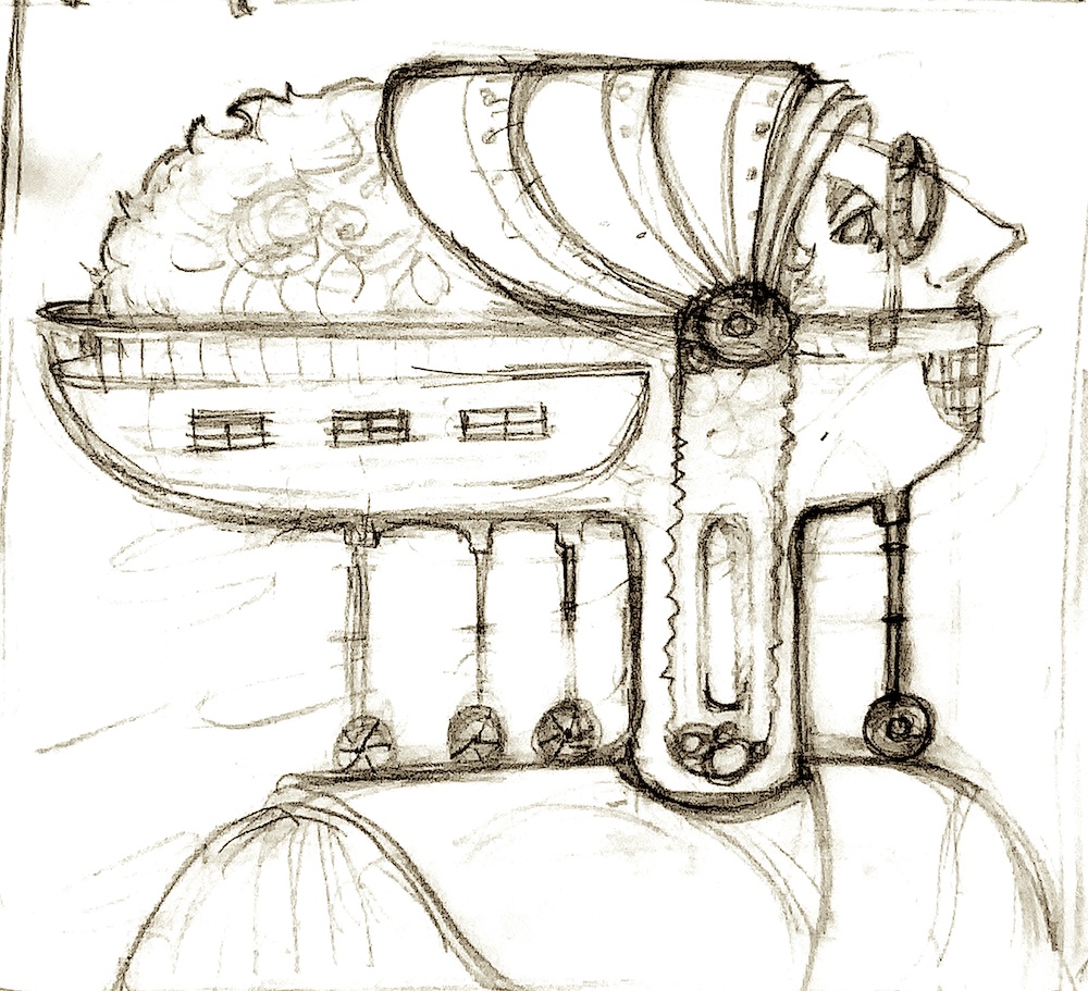 After I have identified a thumbnail that feels like it resolves or answers the questions I am looking to answer, I often scan it and print it out at a larger scale. This helps work out the formal elements of the image, such as the composition and the details. This stage can take time if I don’t have a clear idea of exactly how an image will hold together. If my thumbnail is very rough, refining it to an acceptable level can take reworking and reworking it. I feel that the process is very much the way a writer works, creating a rough draft and then editing and editing it to take out extraneous detail and leaving only what supports the concept.