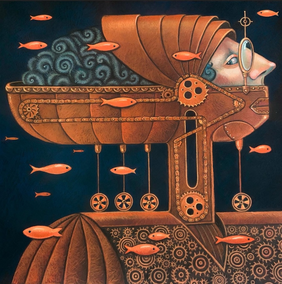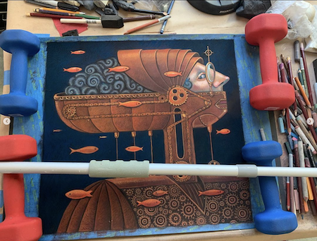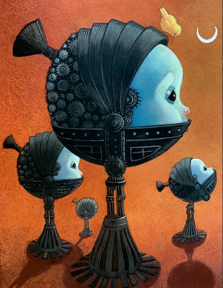 Wow, Michele’s work is soooo interesting, very thought provoking. Kind of reminded of Hieronymus Bosch paintings. And her bird paintings are wonderful. Good stuff!!!