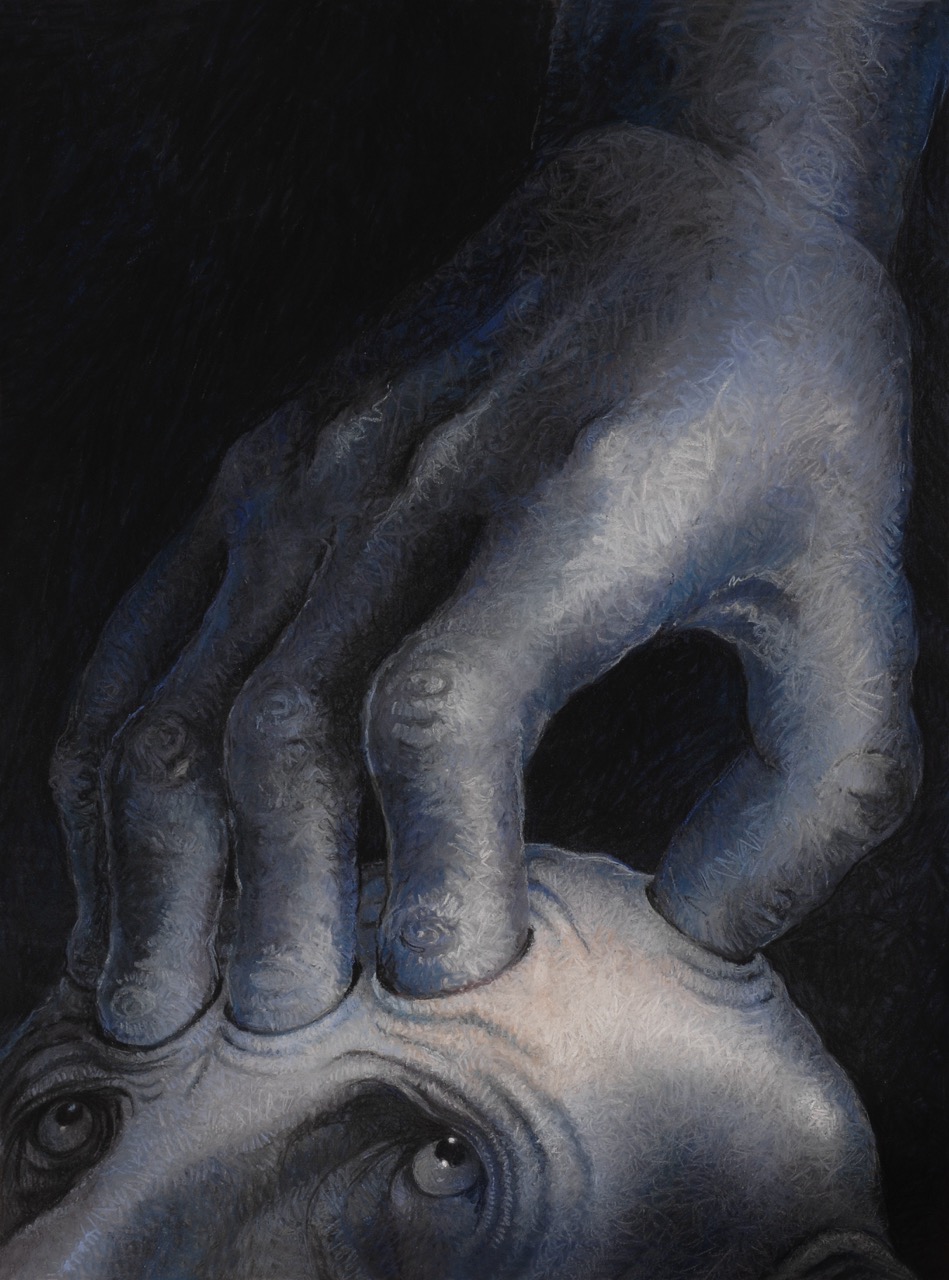 Depicting the evils of man seemed like a topic rich with visual possibilities. I was drawn to dystopian novels written as a criticism of political and social institutions, especially because they characterize specific evils of human nature that I strove to convey. They helped outline and delineate my thoughts. Current topics in the news and the media, after all, are most often recurring events dealt with throughout history in varying guises.