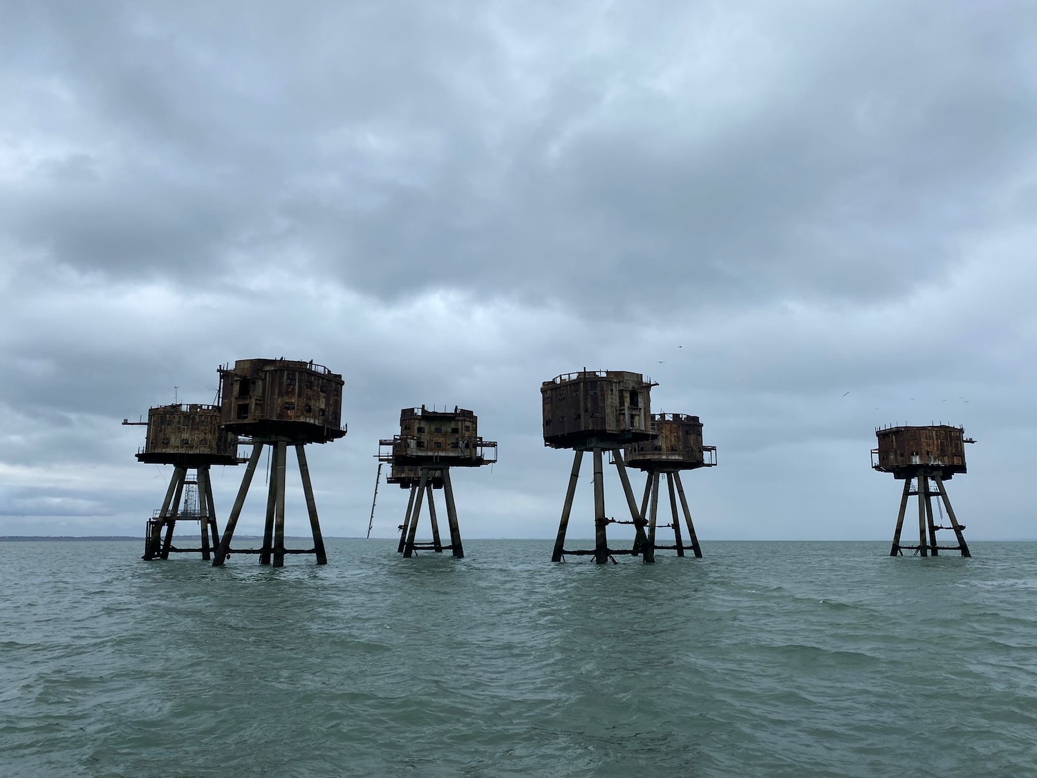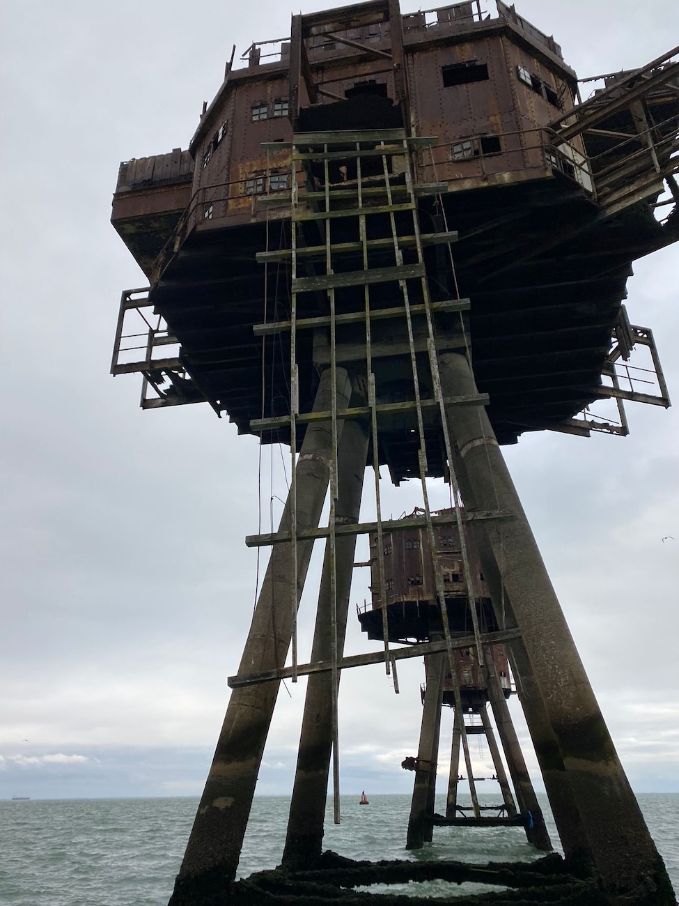 The Maunsell forts built in the Thames Estuary to protect the United Kingdom from German vessels are structures that I return to repeatedly. I find them eerie but beautiful and am fascinated by their transformations in time. Based on these structures as well as other abandoned spaces that have been given new life such as GasWorks Park in Seattle, I have been developing a collection based on this theme.