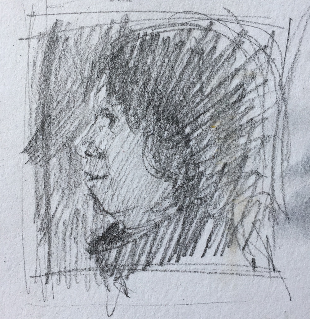 Now for the subject….a night scene? a dog walker? I had thumbnail sketches for both of these. Then I remembered the challenge I had set for this week’s Friday Challenge in the HowToPastel Facebook group – a self-portrait in profile. Yes, that’s what I’d do!