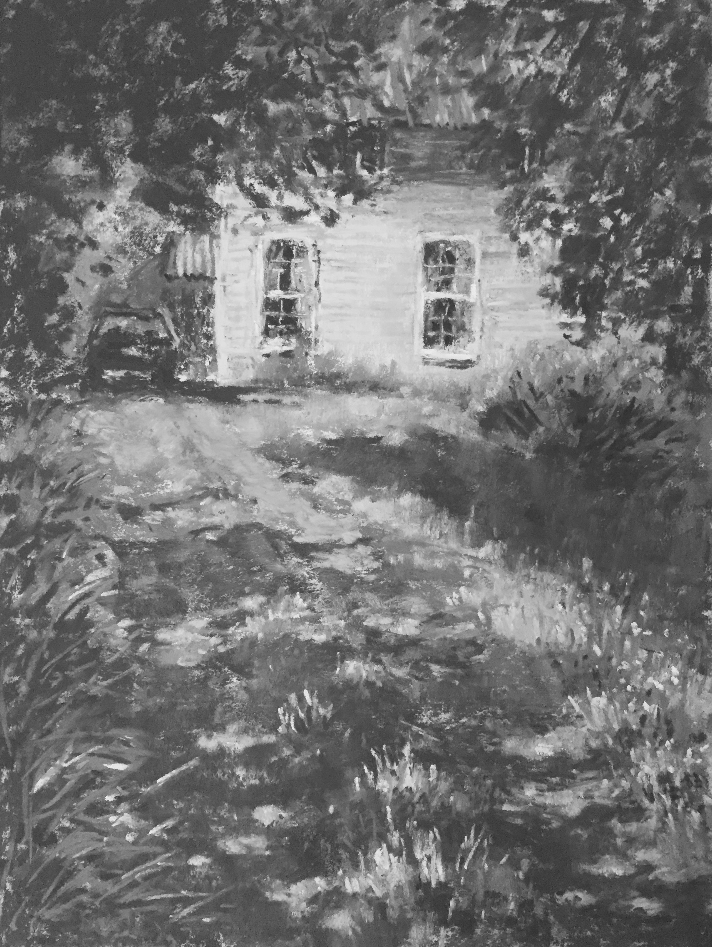 Here’s the thing that bothered me most: with the house being such a bright yellow, there wasn’t much to entice the eye to go elsewhere, and if it did do some travelling, it didn’t stay away very long. This is true both in the colour and black and white version.