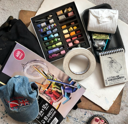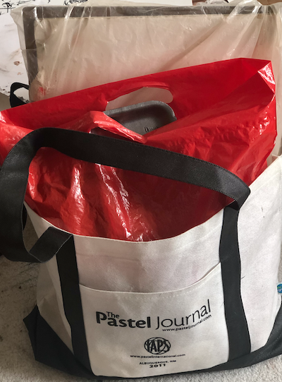 - Small roll of toilet paper to clean pastels as I work and after the session (I didn’t take this because it takes up space and I was sure I could get it at my destination!)