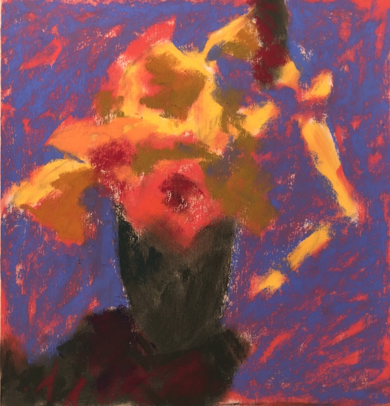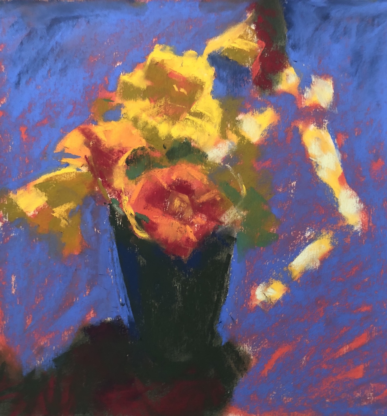 What a stunning interpretation of the subject, and a reminder of the power of complementary colours to give a real punch to a picture. That vibrant blue background also gives the flowers a real punch, they’re almost leaping off the page! Thanks for reminding us how important it is to do an underpainting to reflect the main tonal values, and this is where I often end up scratching my head; which colours to use as an underpainting? How to match colour to tone? (I never have problems if working in monochrome). I’m encouraged to have a go, though, with your main points in mind. I find I do so much reading about the THEORY of pastels and painting that I end up in a state of paralysis and don’t dare put pastel to paper for fear of ‘failing’, so I think it’s time to loosen up, have a go, have another go, and keep going, seeing every work as a learning process … and to enjoy the journey rather than beat myself up about the result! Thanks.