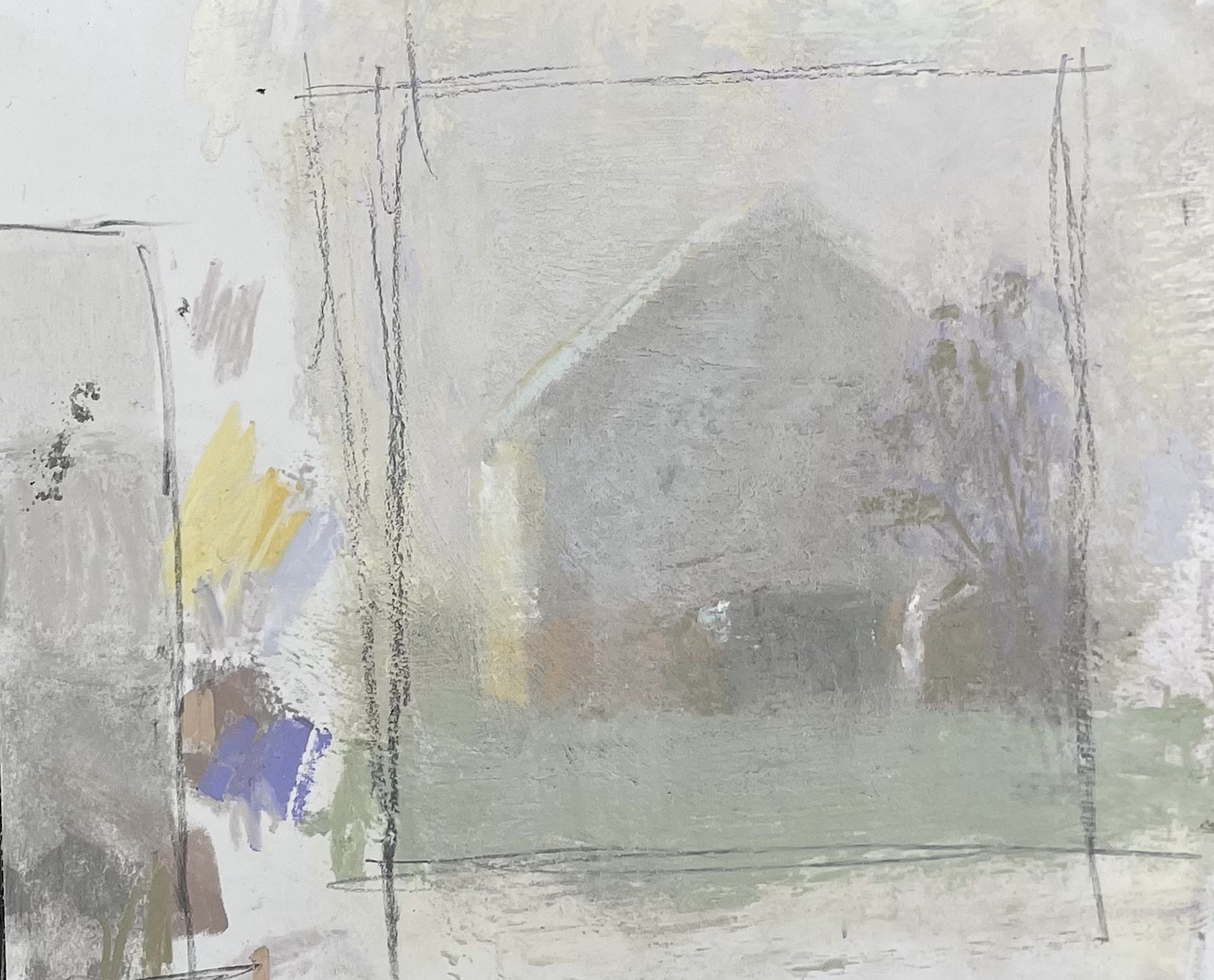 Colour Note Study for Barn 3 Triad: Colours tend to lose their identity when the values are so light. Any colours could be used. I decided to use the colour harmony of orange, green, violet Triad.