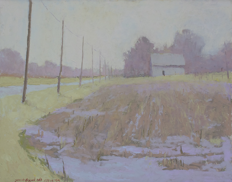 I first started painting en plein air before it was popular. I would often be out by myself along the side of the road. The experience taught me about colour, value, shape, design, and most of all, the light and capturing the feel of the light. Being out in the open air, seeing, hearing, and painting the colour of the light made me feel a part of the landscape as if I belonged in this world. Because my paintings are so deeply rooted in the environment, they often reflect the rural area I live in.