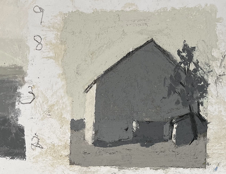 Value study for barn 3 light values: I think this is one of the hardest value study, I am trying to get the feel of a foggy morning, all values become lighter. It’s difficult to stay in that range.