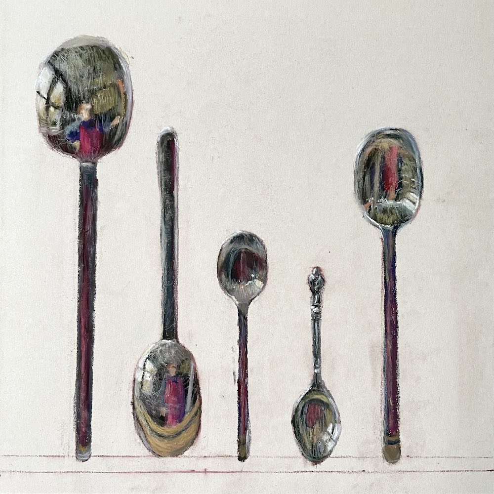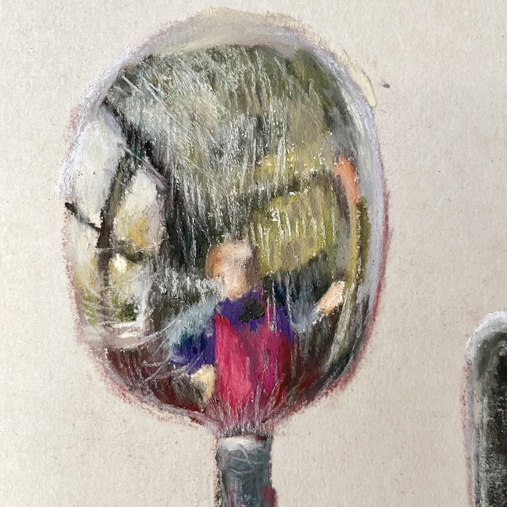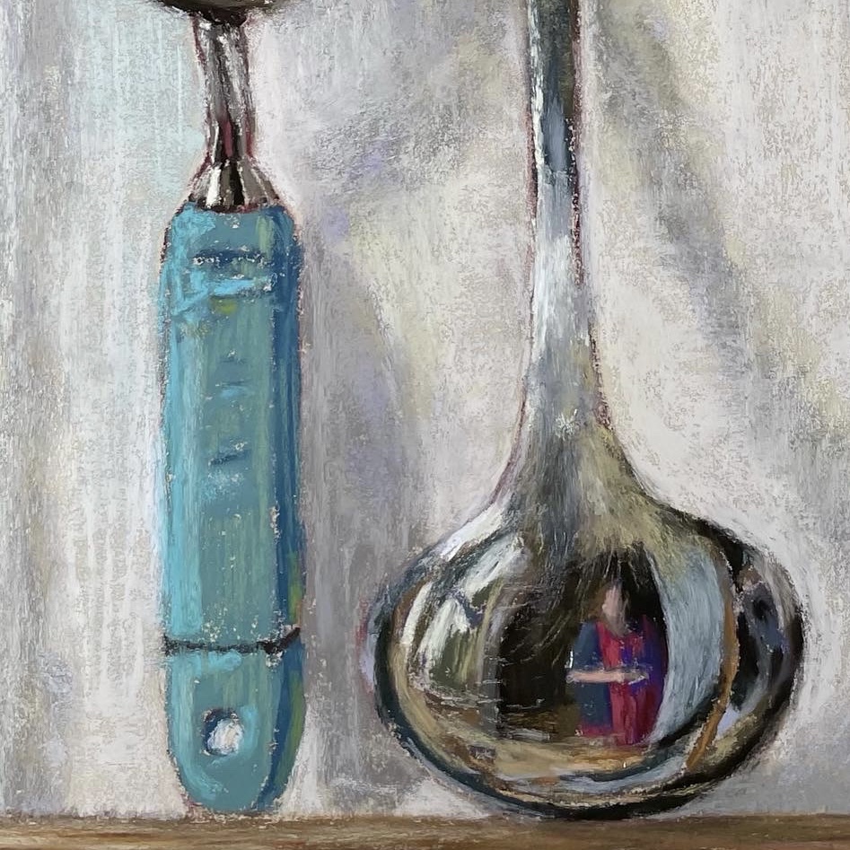 By the time I started Self Portrait with Apostle Spoon, my second piece, Ladle Selfie II, had been selected for the International Association of Pastel Societies (IAPS) webshow 2022, which I was absolutely thrilled about! This also gave me reassurance that this may be a subject worth exploring further.