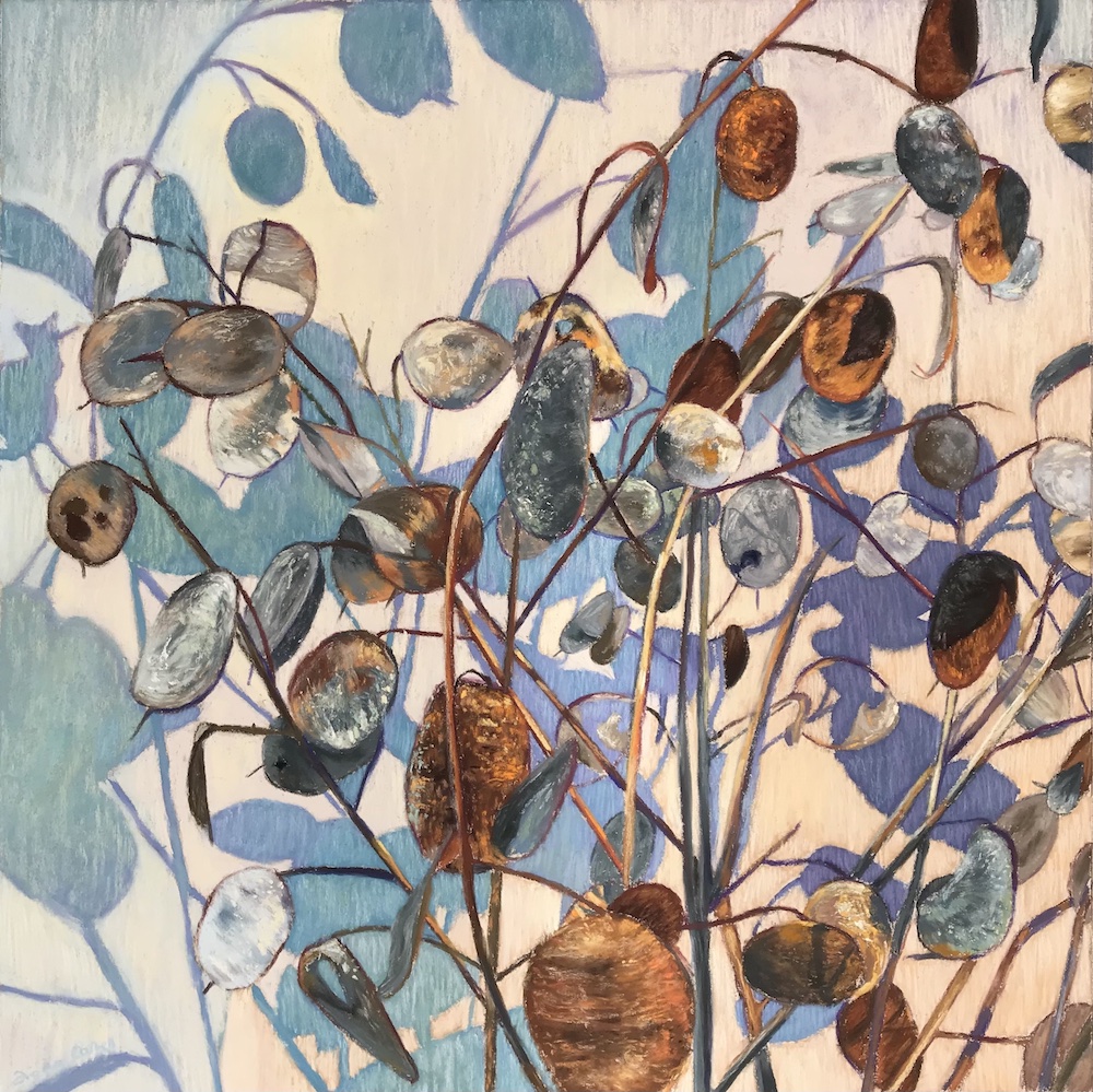 I painted four Honesty paintings, three of which were exhibited with the Pastel Society UK (Shadows of Honesty, Silver & Gold, and Suspended Animation) in 2021 and the fourth, Finding Honesty, was accepted for my first PSA exhibition and my first international award, the Advancement of Pastel in Modernism Award, donated by Arlene Thek.