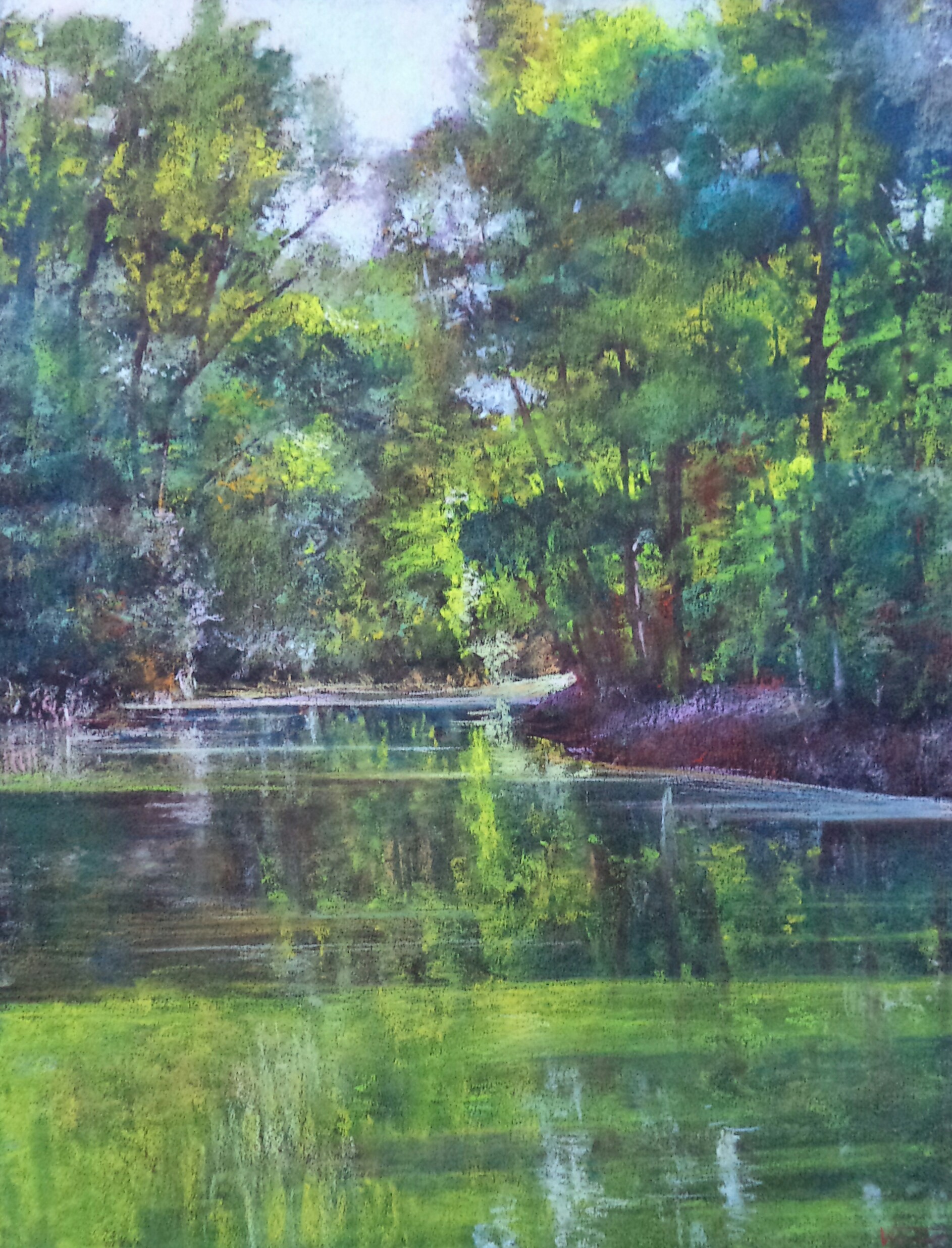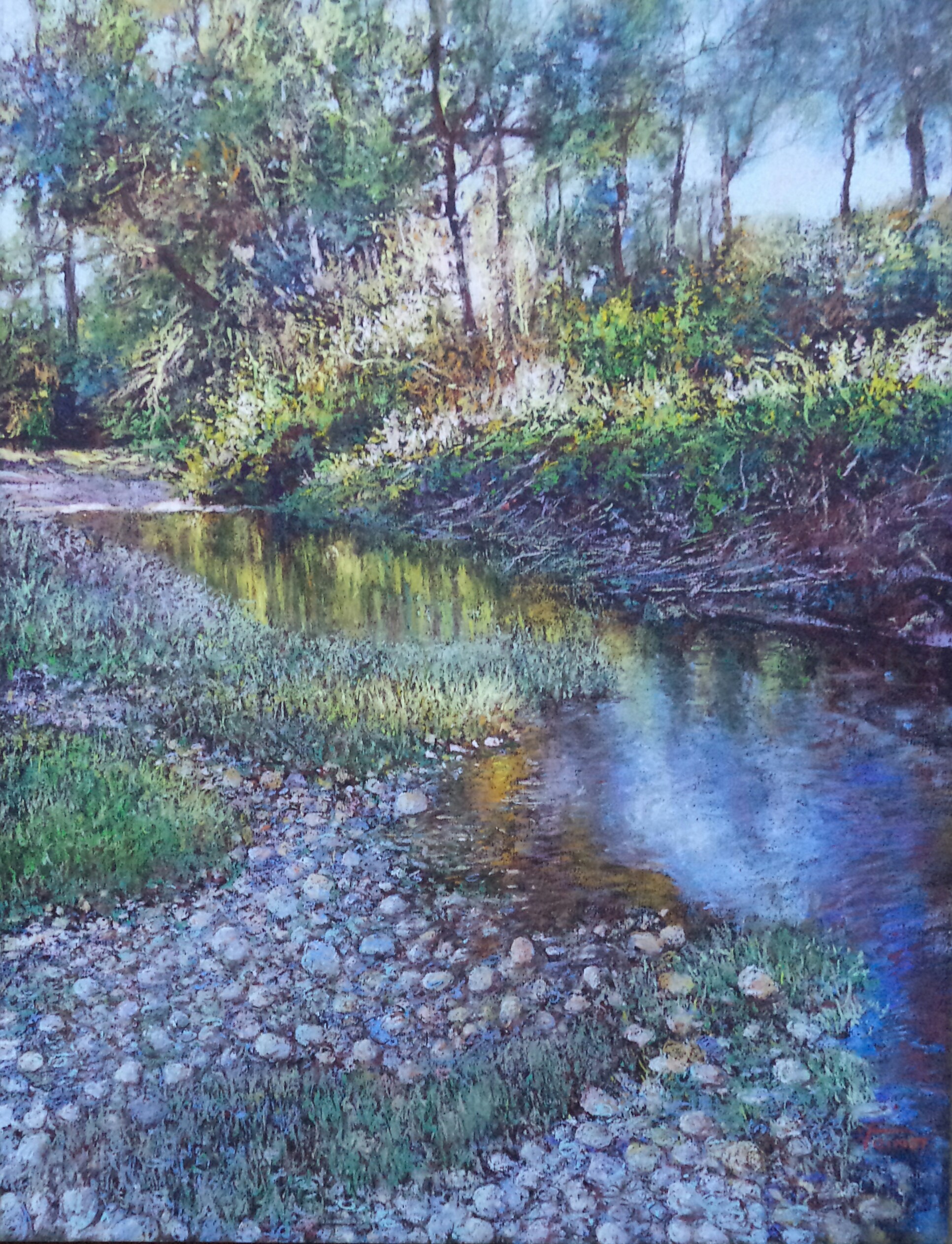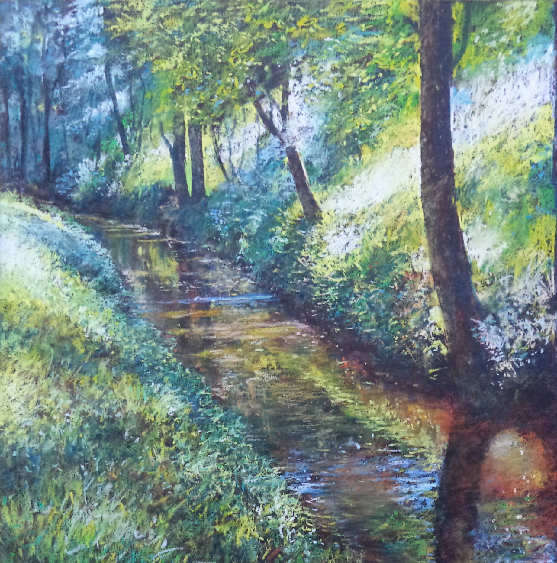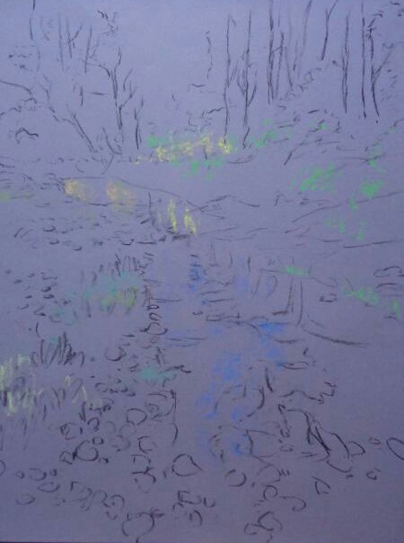 I often walk in nature, for the pleasure of walking, but also to find new subjects. Many pastellists know that during walks we see beautiful landscapes, but also, and especially future pastels. However, I am convinced that a beautiful landscape does not always produce a beautiful picture. Also I prefer scenes that are more intimate, even anecdotal to the broad landscapes – ”the postcard landscapes.”