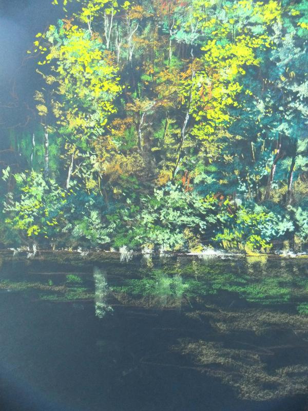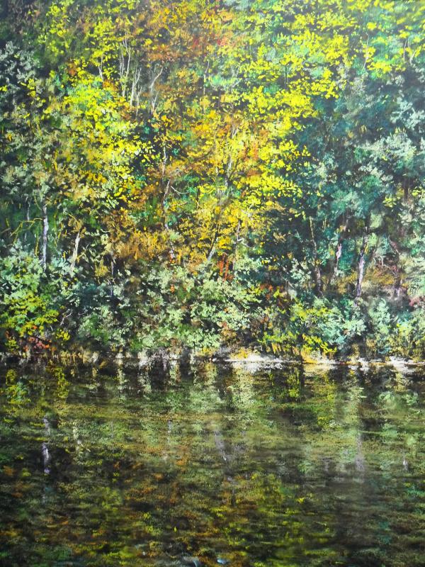 My use of colour is very instinctive, linked to a direct emotion. As one of the dominant colours of a landscape is green, I wondered how to make the green colour interesting. Green is a colour reputedly difficult to work. It is a colour considered “ungrateful”. Yet I manage to give colours to the green, using variations of this colour: orange greens, grey greens, bluish greens … etc. Thus the greens preserve their identity, but with a more nuanced and warm aspect.