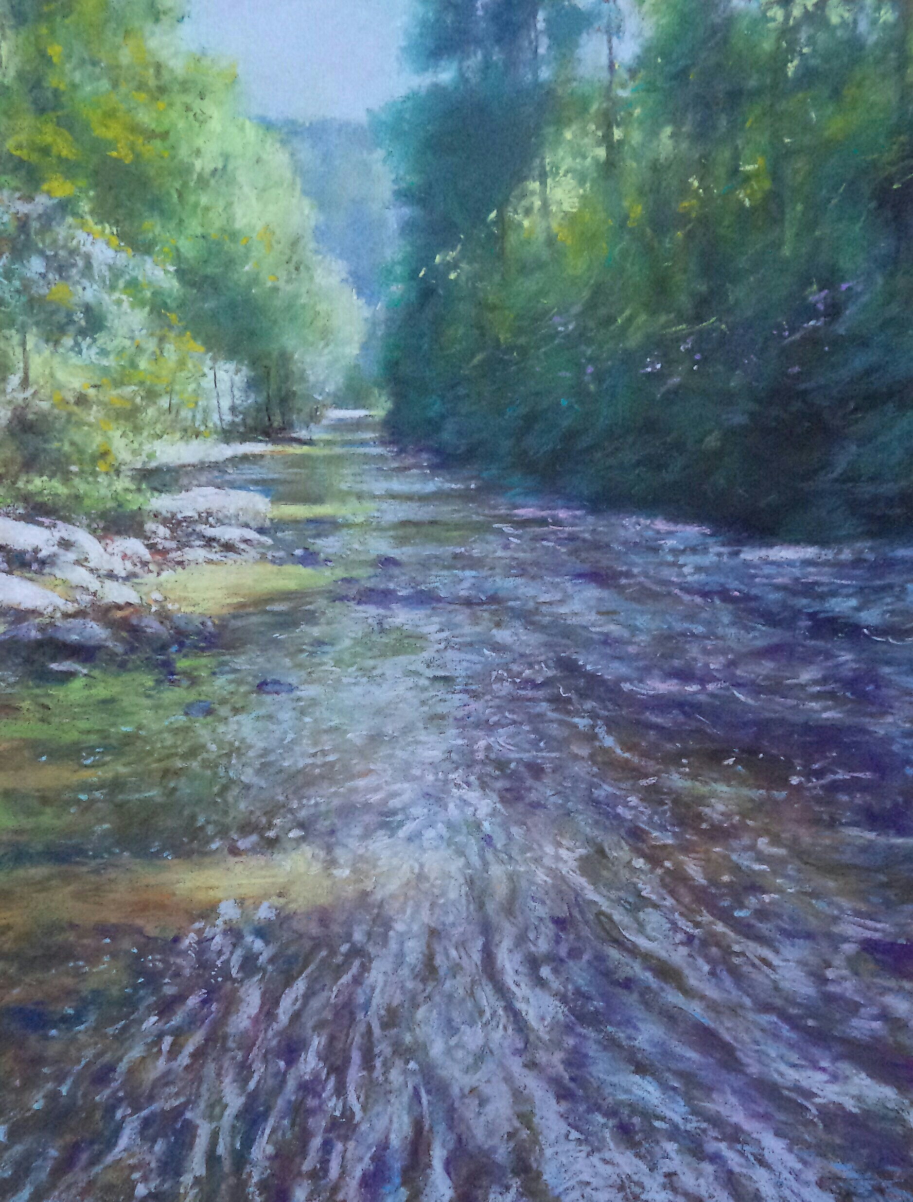 I know what you mean about Canson. Part of my amazement with Alain’s work is 1) it’s on black paper and 2) that he can create these beautiful landscapes on a spare that doesn’t take much pastel and which doesn’t do justice to the colours in pastels (they are more vibrant when used on sanded paper).
