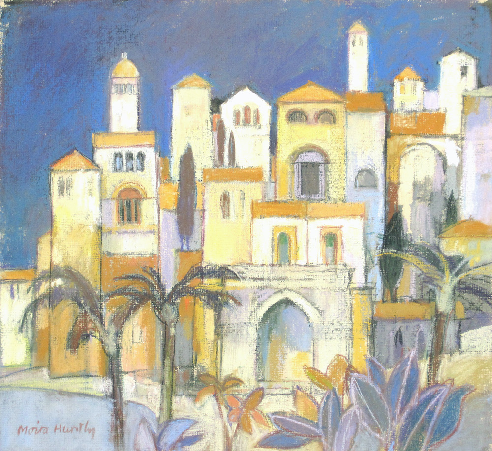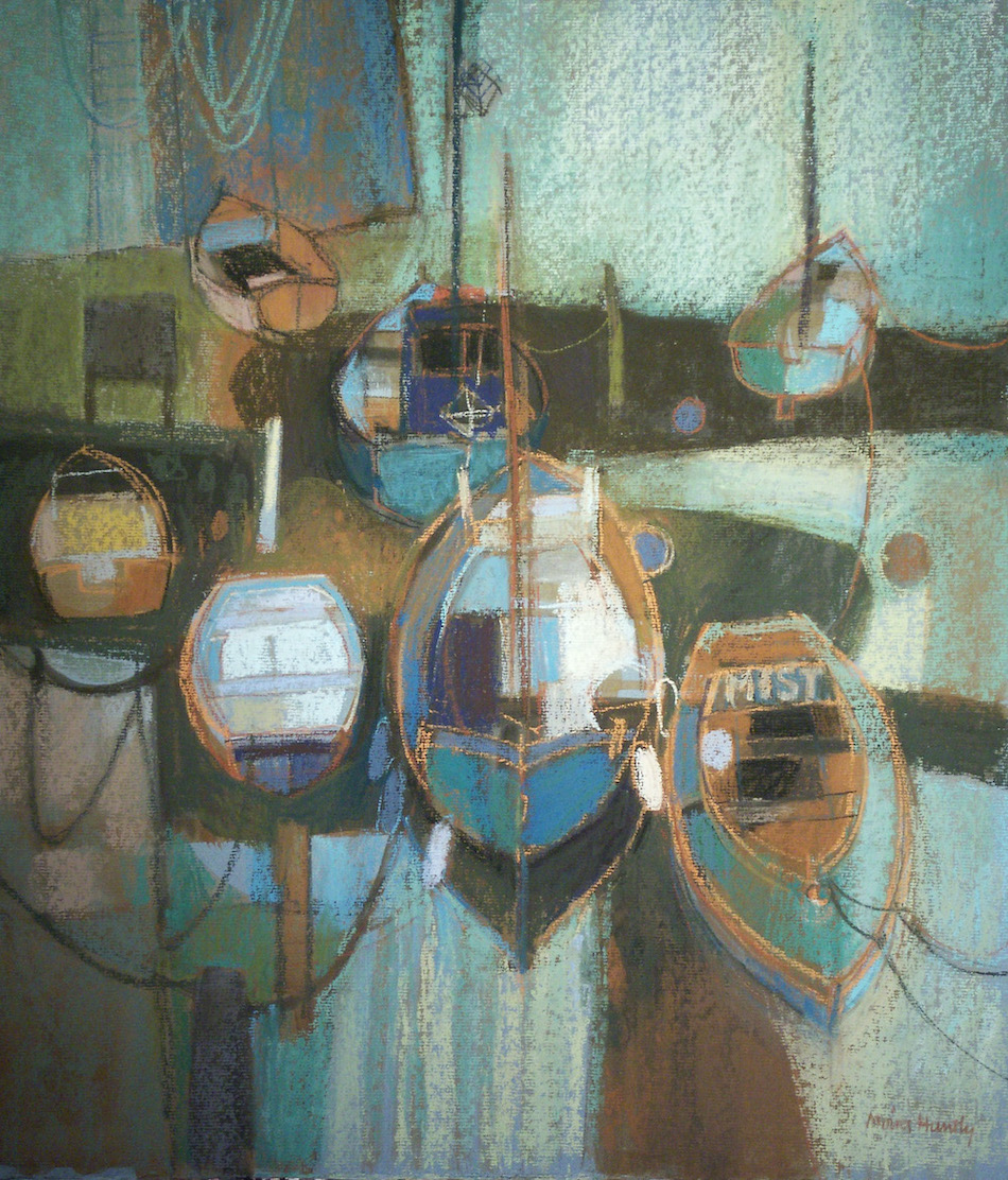 Moira Huntly, born 1932 in Motherwell, Scotland, studied at Harrow School of Art and Hornsey College of Art in London. She went on to become the first woman President of the Pastel Society since it was founded in 1898, and was a past Governor of the Federation of British Artists. Elected to the Royal West of England Academy, the Royal Institute of Painters in Watercolours, and the Royal Society of Marine Artists, Moira exhibits widely and has undertaken many commissions for international companies. She is a teacher and author of several books relating to the practice of drawing and painting. You can see more of her work on her website.