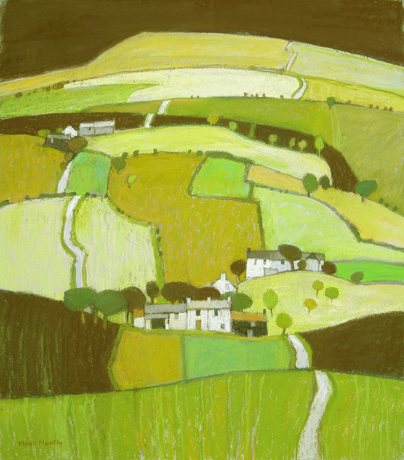 I wrote about one of Moira’s landscape pieces in one of my roundups. (Click HERE to read it.) What I said certainly expresses a lot of what I feel about her work. I’m mesmerised at how this artist sees and transposes the pattern of the landscape rather than directly recreating what she sees. Can you tell Moira Huntly is one of my art heroes?
