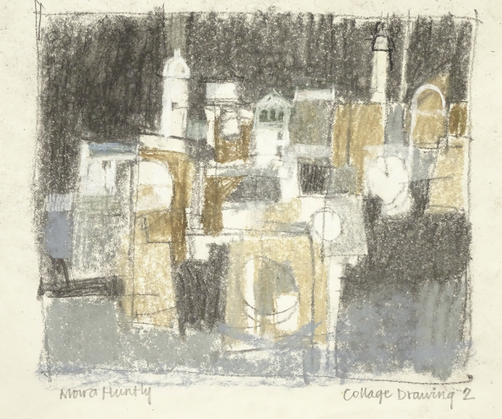 Other working methods show how I make a rough tonal drawing of a collage, usually in pastel or charcoal and this helps to crystallise ideas.