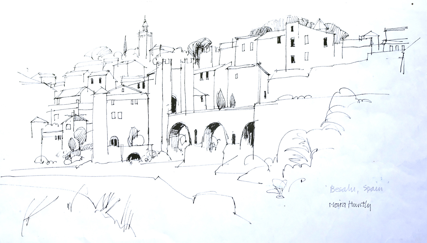 Stage 3 Pen and ink drawing of Besalu, Spain
