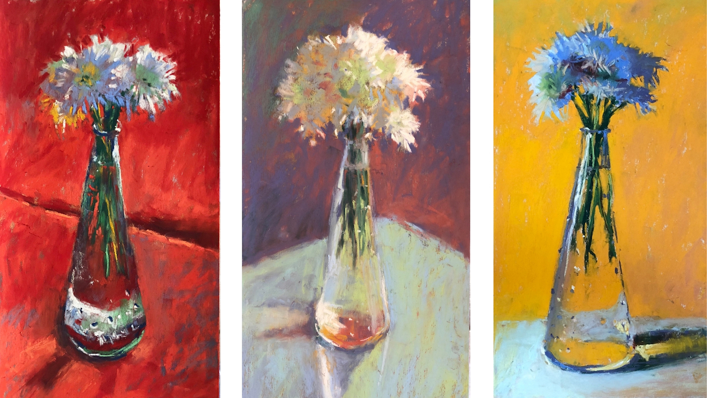 Also imperative is to make sure you have everything at your finger tips. If you have to put everything away at the end of the day only to need to pull it out every morning, you’ll find this starts to become a barrier and an excuse not to get painting! Have your paper cut and at the ready. Make sure your pastels are at hand. If this is usually tricky to do because of a small shared space, ask others around for their understanding. Let them know the Challenge is important to you and that it will help you be successful if you have your supplies ready and easily available. Get them onboard for your artistic growth!